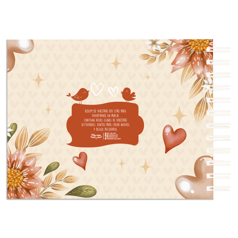 - Álbum de fotos tipo scrapbook de 21cm × 16.5cm. Puedes personalizar los nombres.