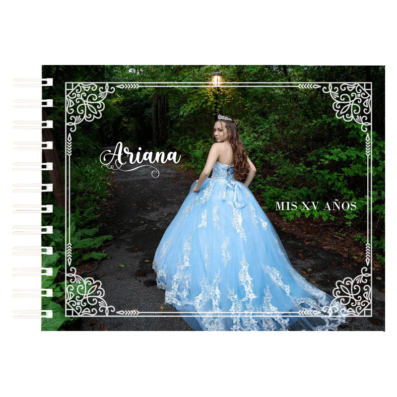 - Álbum tipo scrapbook de 21cm x 16.5cm con anillo doble ring y tapa dura personalizada